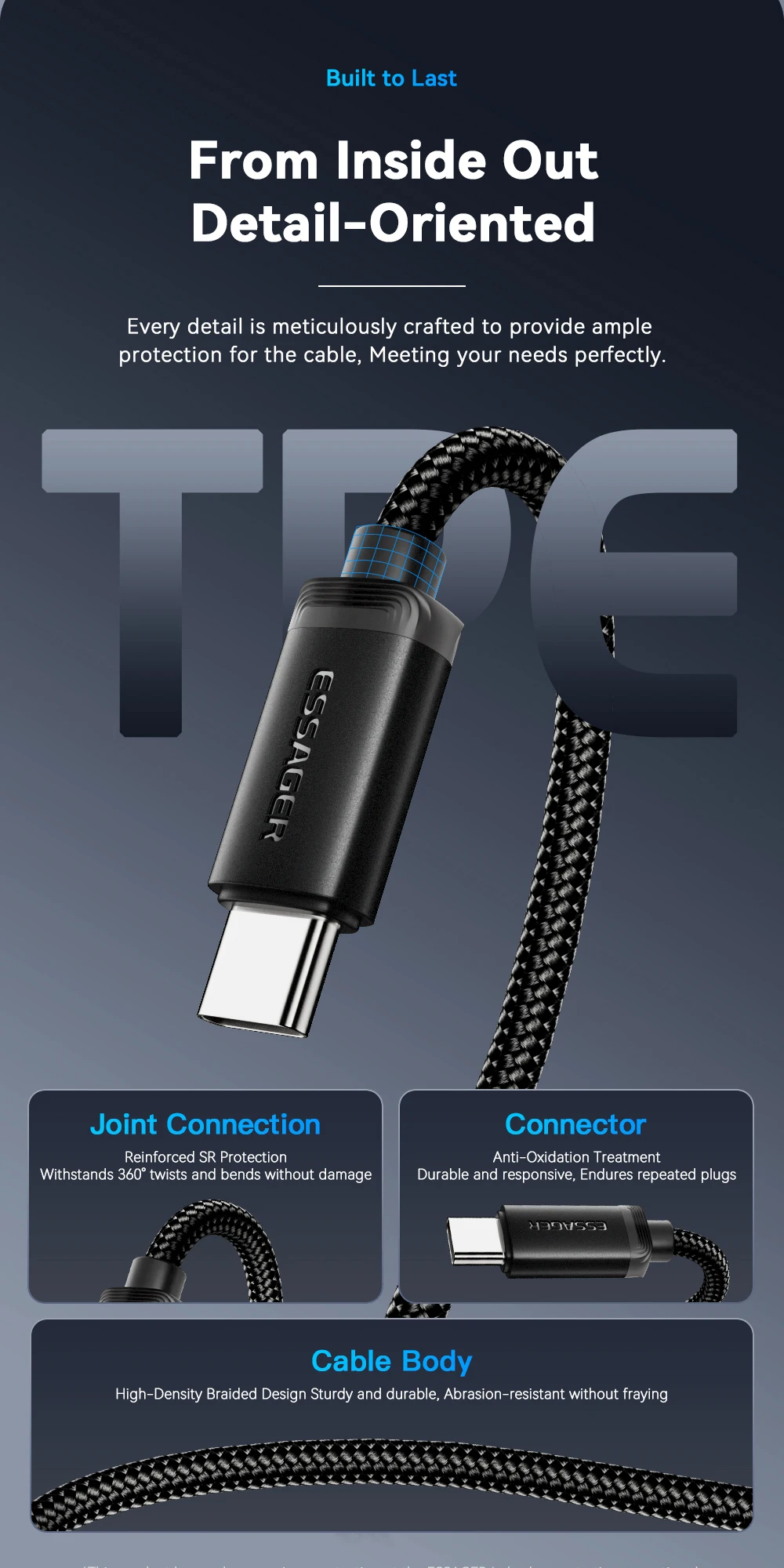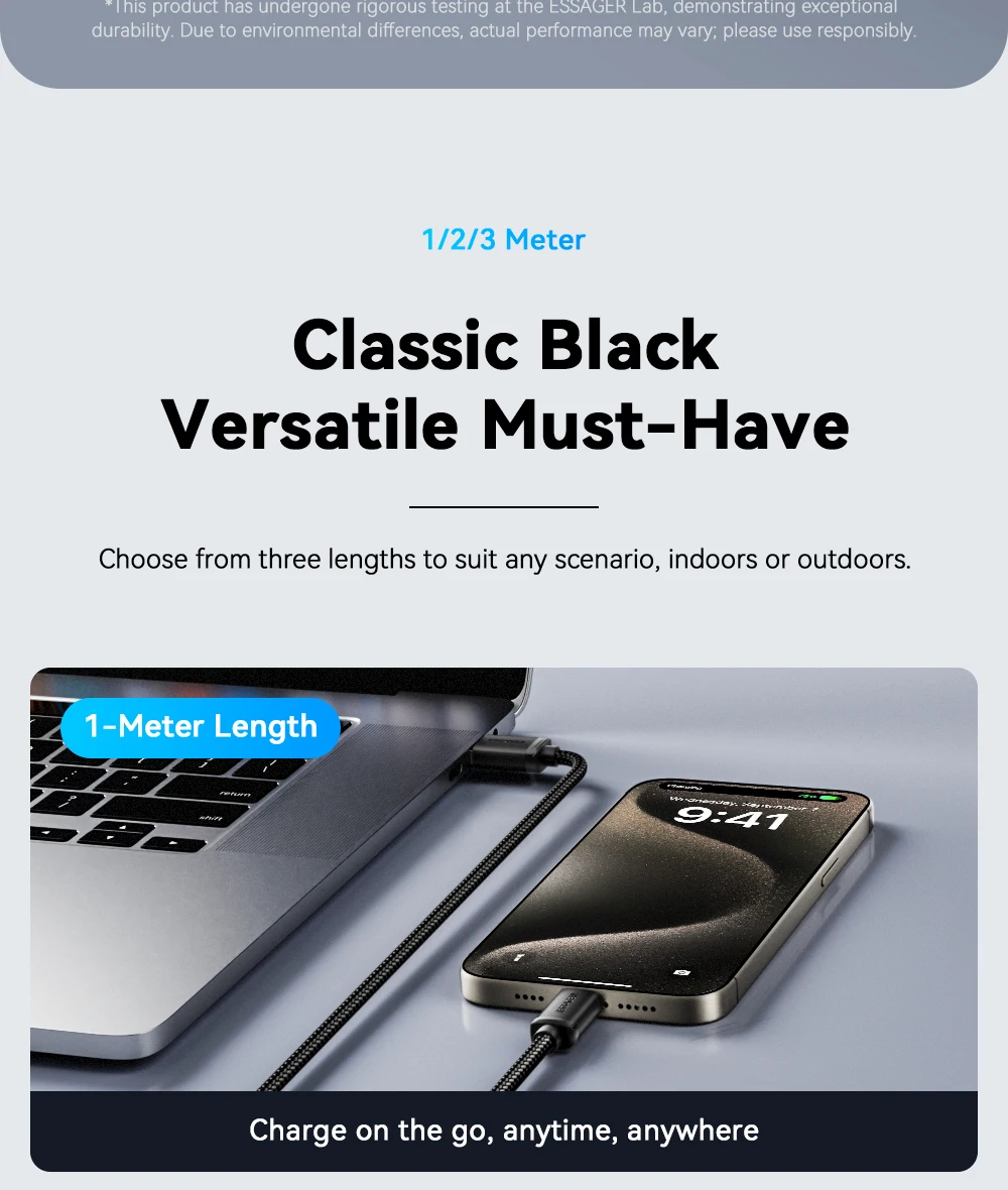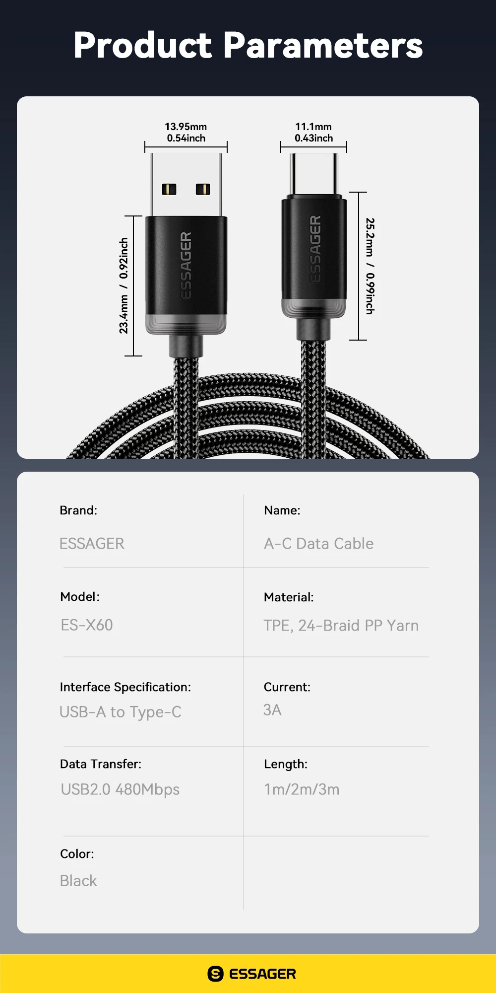 Fabriqué avec des matériaux de haute qualité, ce câble est conçu pour résister à l’usure quotidienne. Sa couleur noire élégante et son design robuste en font un accessoire non seulement fonctionnel, mais aussi esthétique. Vous pouvez l’emporter partout avec vous sans craindre qu’il ne s’endommage.