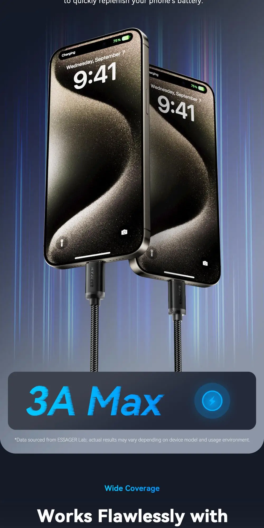 Chargeur Rapide 3A – Ce chargeur offre un courant maximal de 3A, permettant une recharge rapide de vos appareils.