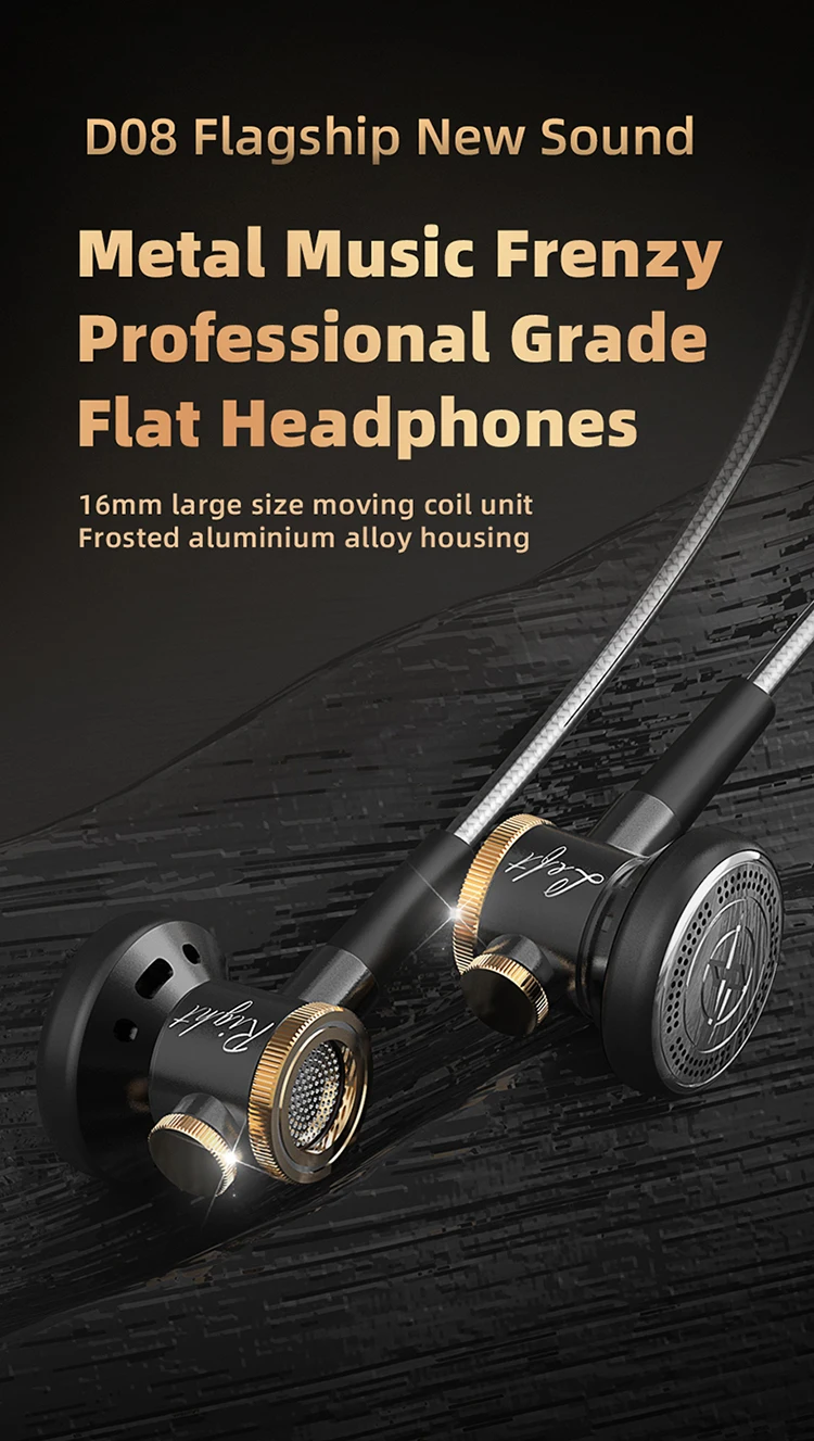 D08 métal HiFi 3.5mm dans l\’oreille casque tête plate écouteur avec Microphone filaire clair son basse casques pour sport musique Gamer
