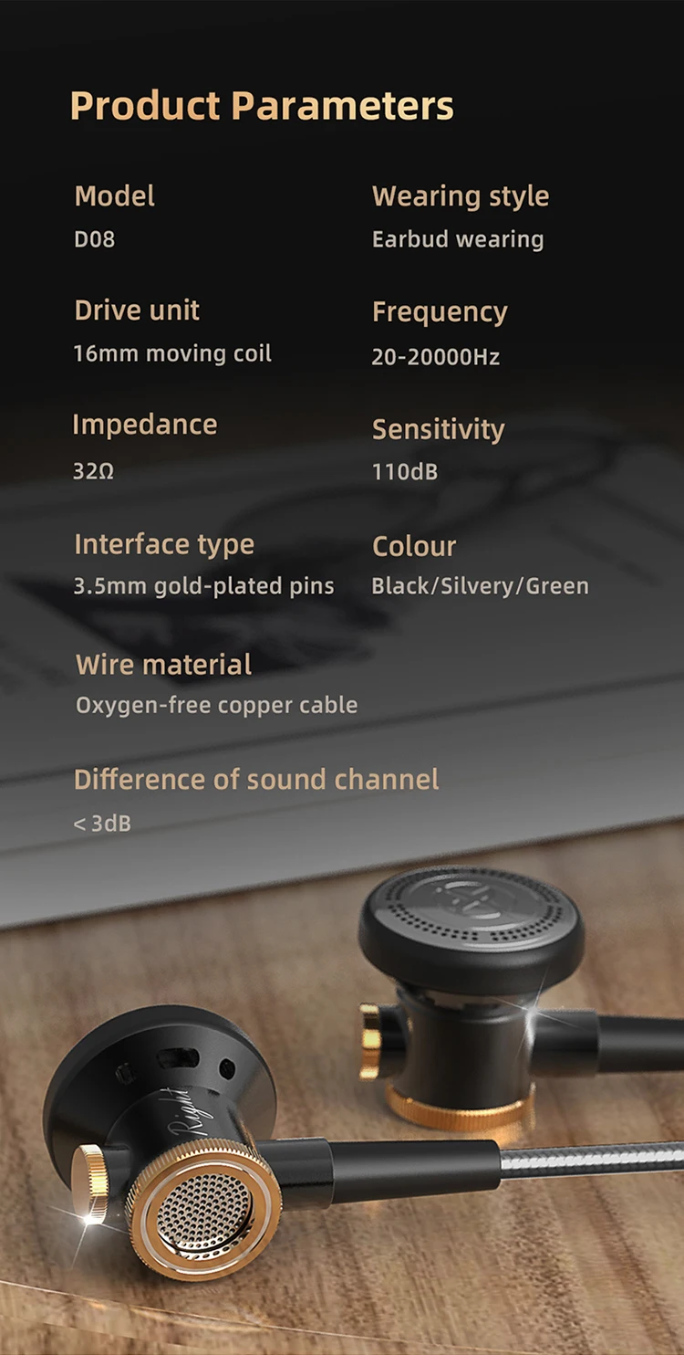En résumé, le Casque Audio Ecouteurs Intra-Auriculaires 3.5 Microphone HiFi Métal Basses D08 est le choix parfait pour ceux qui recherchent à la fois performance, confort et style. Ne manquez pas l’opportunité d’améliorer votre expérience audio et de faire de chaque moment d’écoute un moment inoubliable.