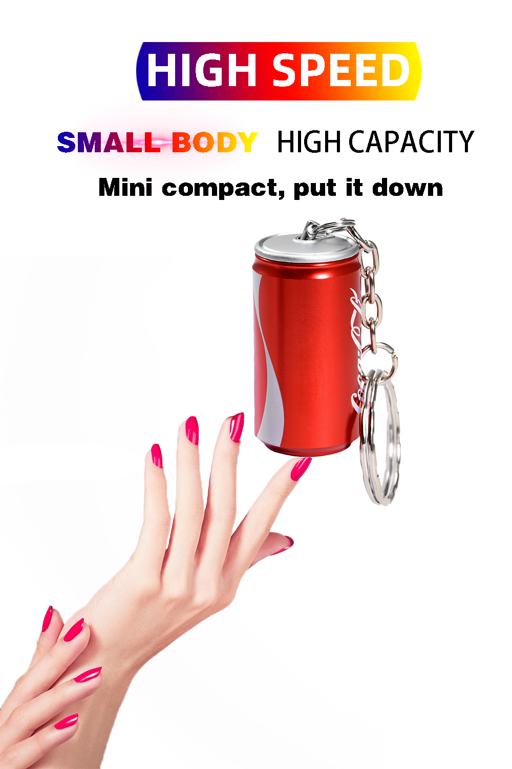 • Design compact en forme de porte clés canette de soda : facile à transporter avec vous grâce à sa petite taille.