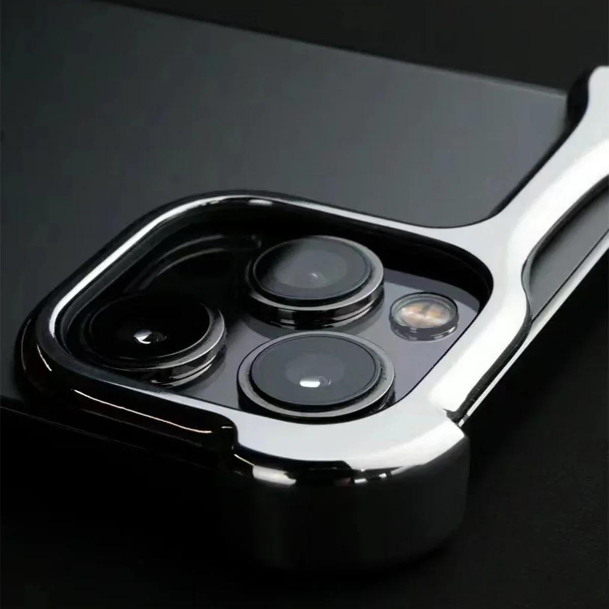 Coque de téléphone antichoc en métal irrégulière pour IPhone 12 13 14 15 17 Pro Max Plus, Film de Protection d\’objectif, couverture antichoc en aluminium nu