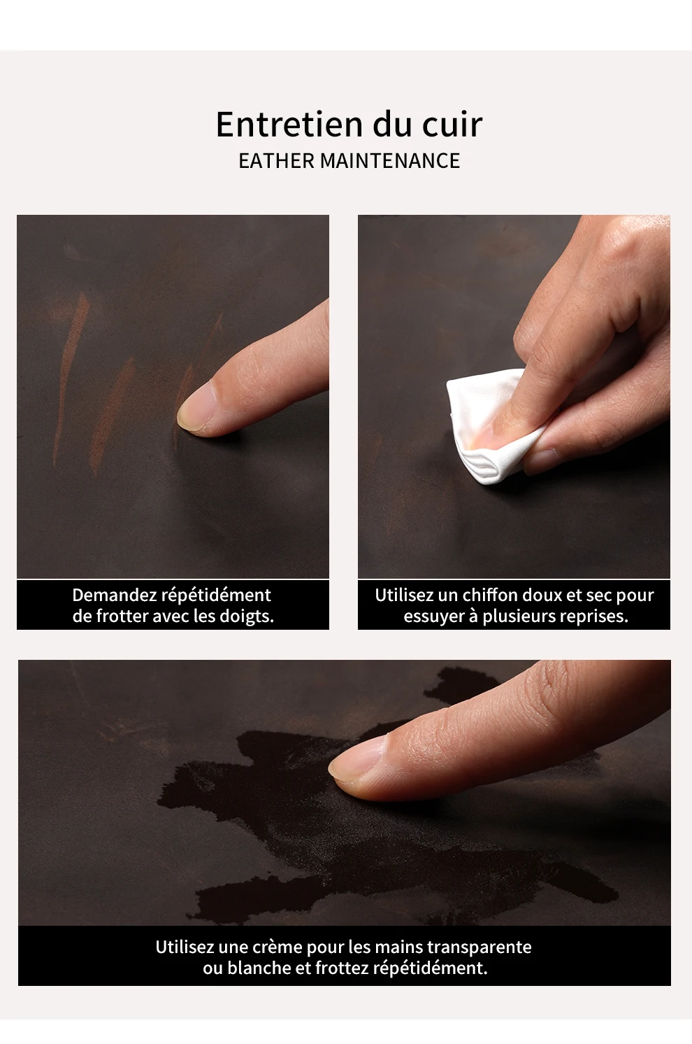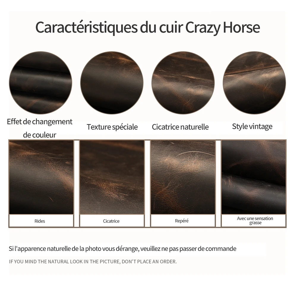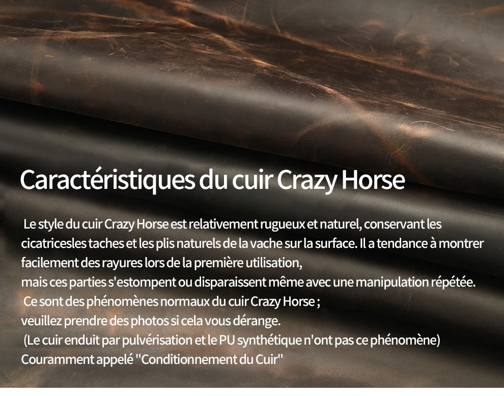 1.Matériau de surface : cuir de vachette 100 % naturel.