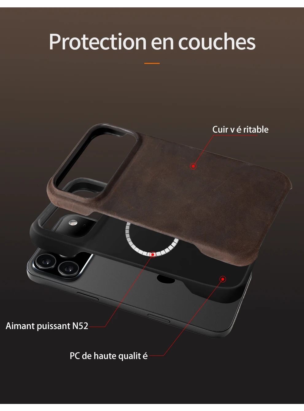 En choisissant notre coque en cuir véritable, vous optez également pour un produit durable et respectueux de l’environnement. Le cuir est un matériau naturel qui, avec le temps, développe une patine unique, rendant chaque coque véritablement unique. Faites le choix d’un produit qui allie style, fonctionnalité et éthique.