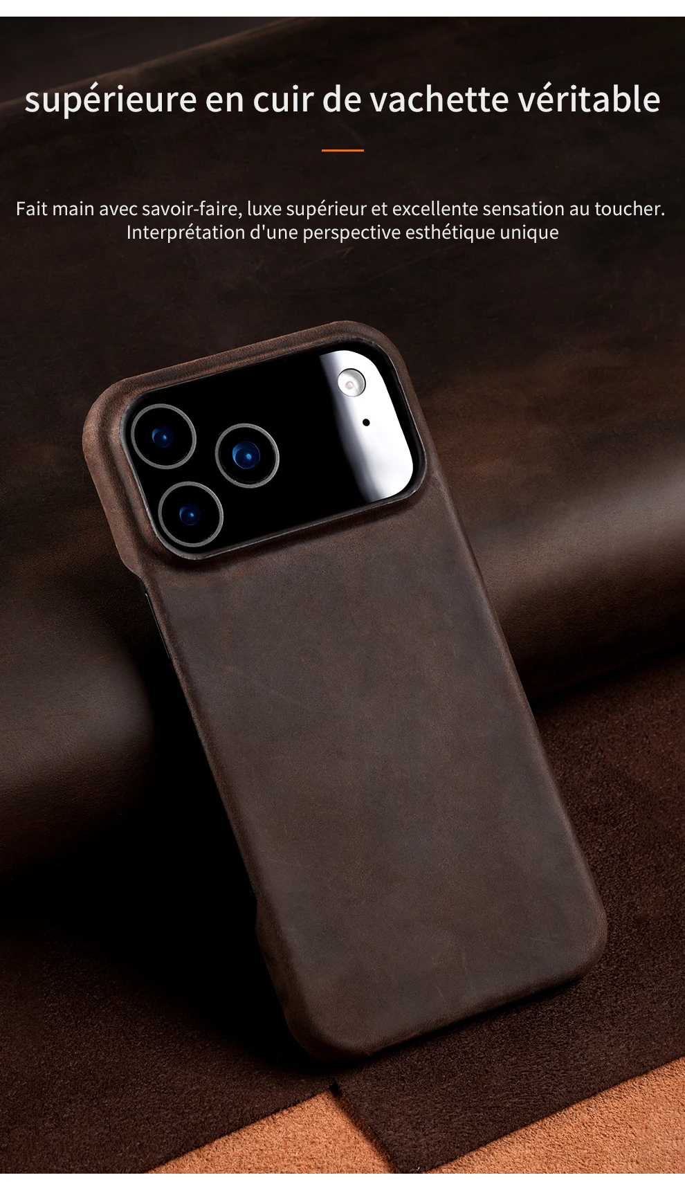 Fabriquée en cuir véritable, cette coque se distingue par son design raffiné et sa finition luxueuse. Chaque pièce est soigneusement travaillée pour offrir un aspect premium qui ne manquera pas d’attirer les regards. Que vous soyez en réunion, en rendez-vous ou lors d’une sortie décontractée, cette coque vous accompagnera avec élégance.