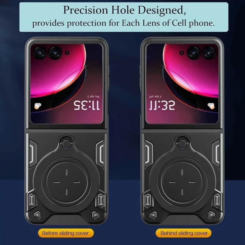 Couvercle coulissant pour Motorola Moto Razr 60 Ultra 50 40 Ultra Razr Plus 2025 est conçu pour offrir une protection optimale tout en ajoutant une fonctionnalité pratique grâce à son support d’anneau. Voici les caractéristiques du produit :