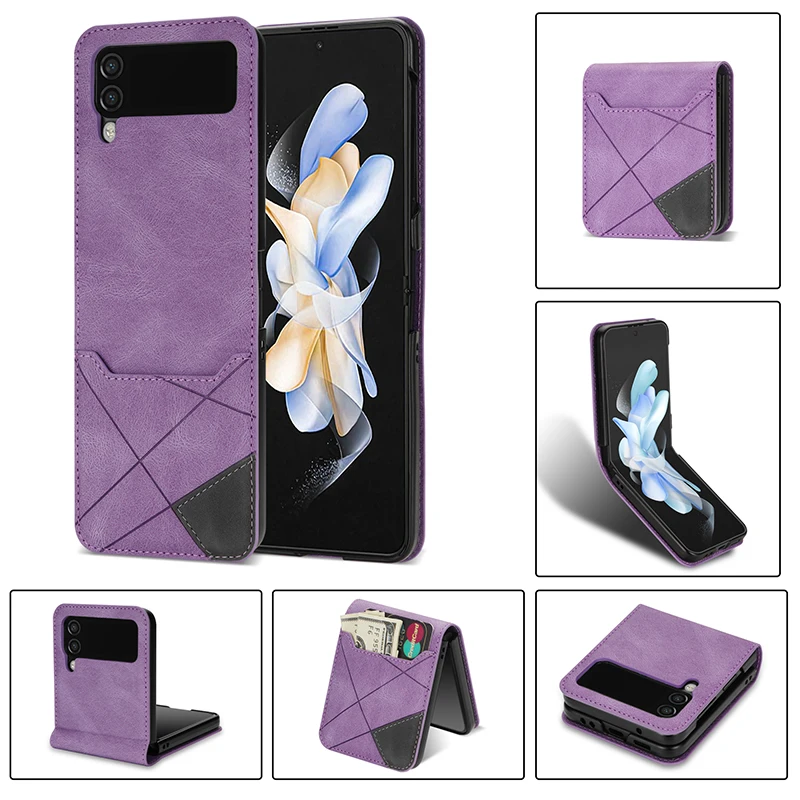 Étui de téléphone avec fente pour carte de crédit, ligne Simple, pour Samsung Galaxy Z Flip 7 FE 6 5 4 ZFlip6 Z Flip 3 4 5G, coque arrière antichoc en cuir PU