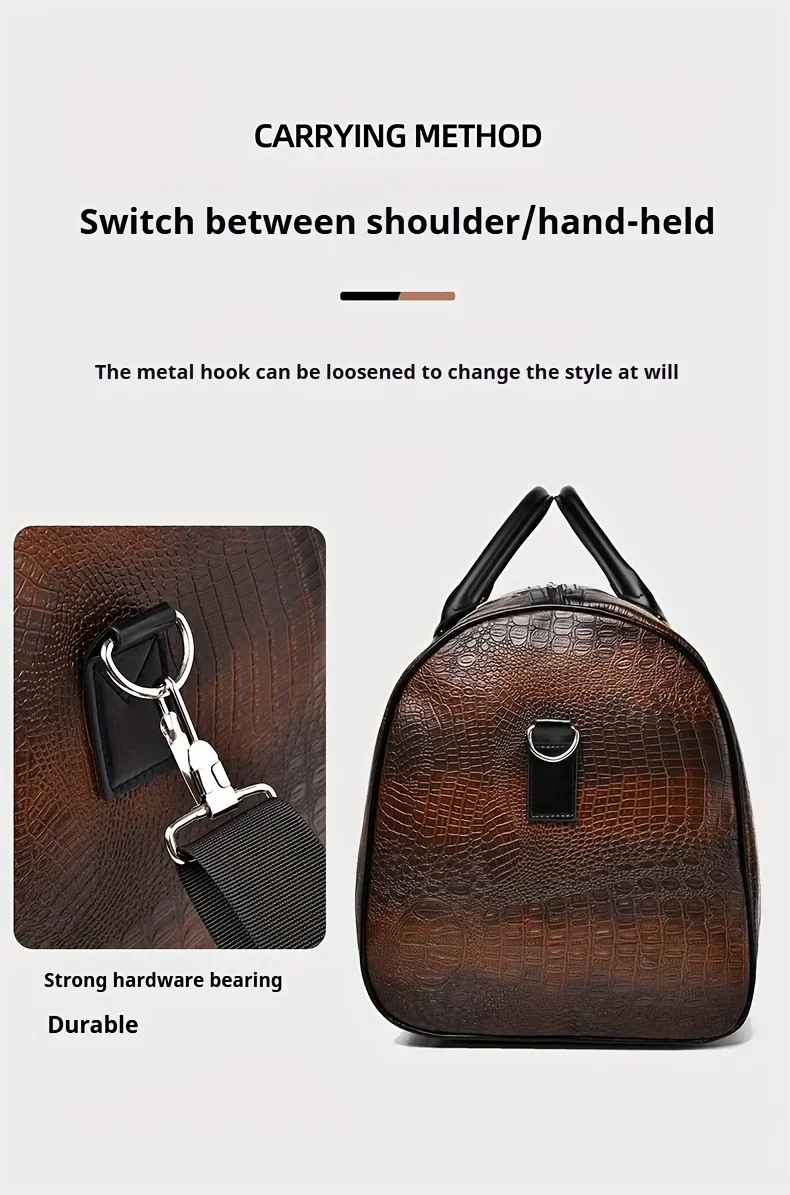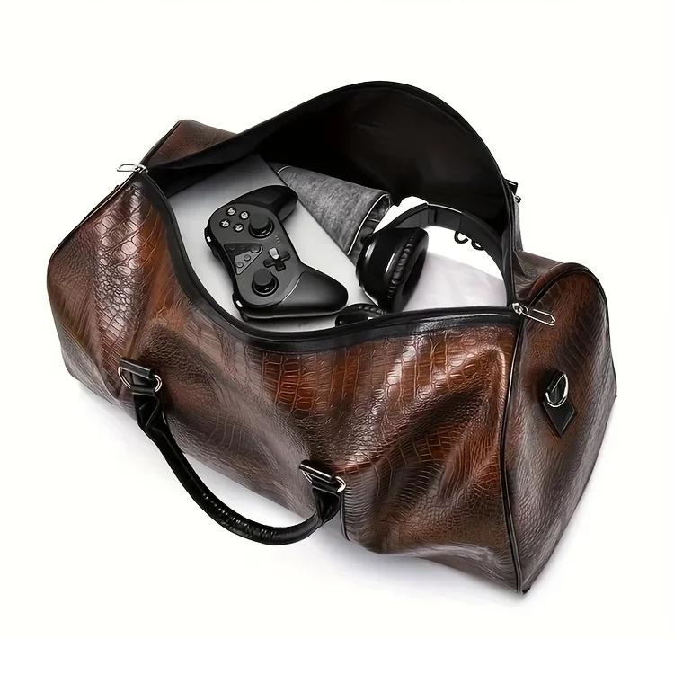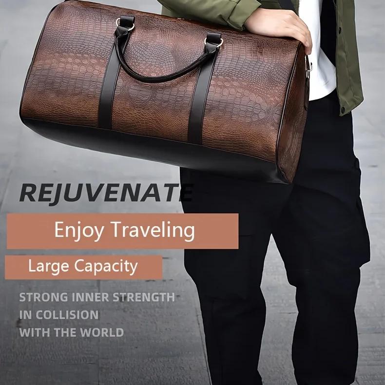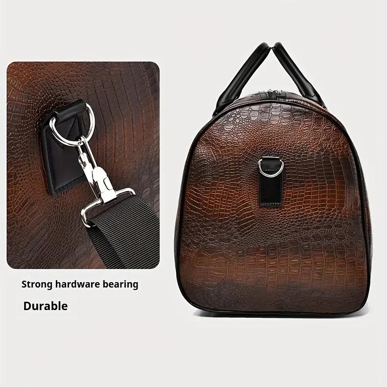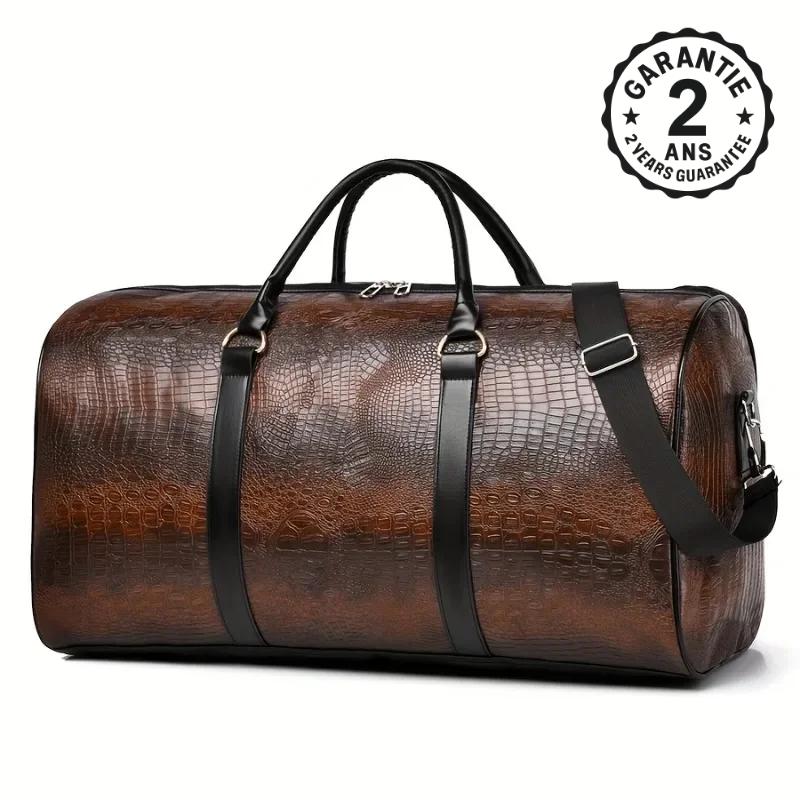 Découvrez le Grand Sac de Voyage Homme Unisexe, un accessoire qui allie élégance et fonctionnalité. Conçu pour les aventuriers modernes, ce sac en cuir PU imitation crocodile se décline en deux coloris raffinés : marron et noir. Que vous soyez en voyage d’affaires ou en escapade le week-end, ce sac saura répondre à tous vos besoins.