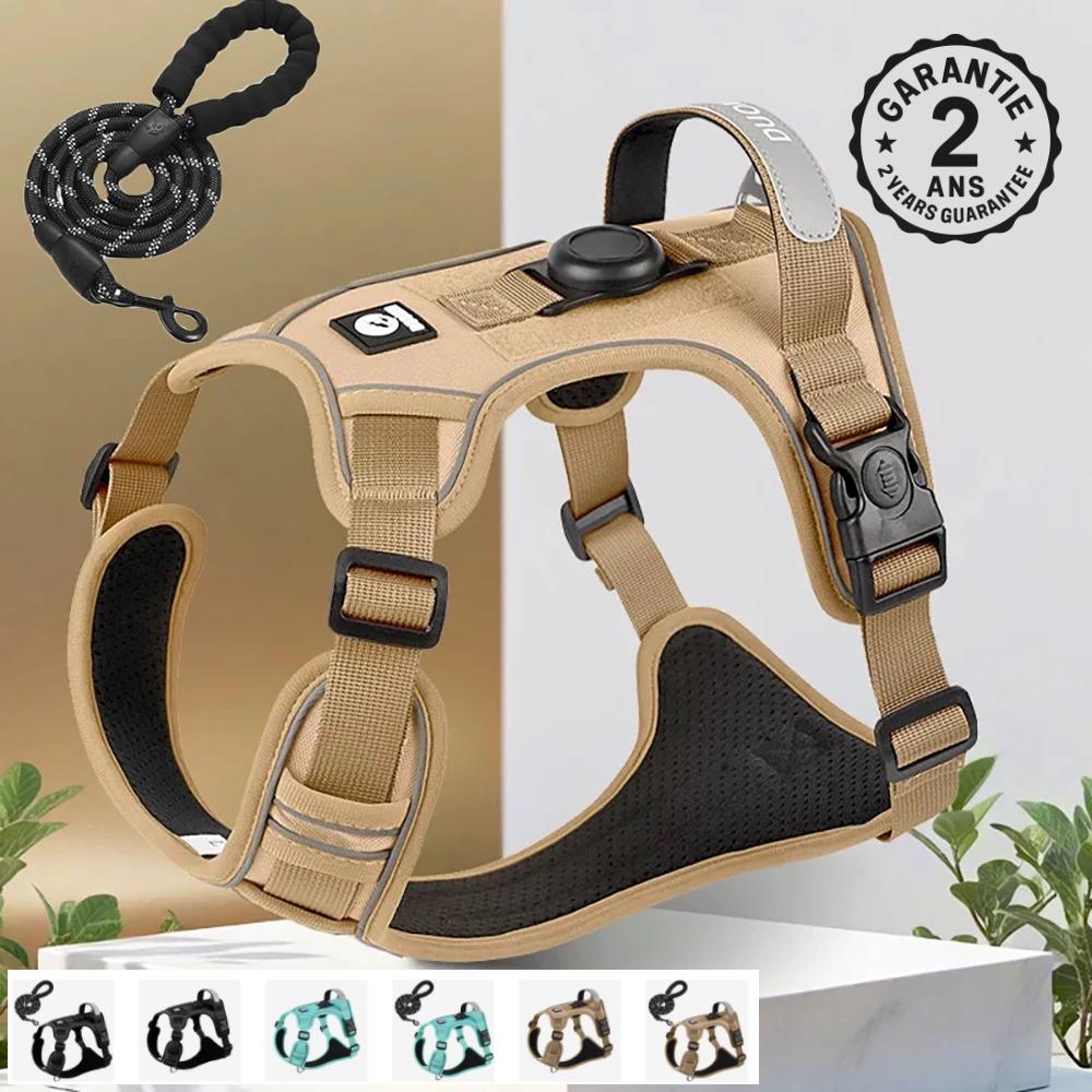 Disponible en plusieurs coloris, dont le bleu vert, le kaki, et le noir, vous pouvez choisir celui qui correspond le mieux à la personnalité de votre chien. Que vous optiez pour un ensemble avec laisse ou un harnais seul, vous êtes sûr de faire le bon choix qui attirera les regards lors de vos sorties.