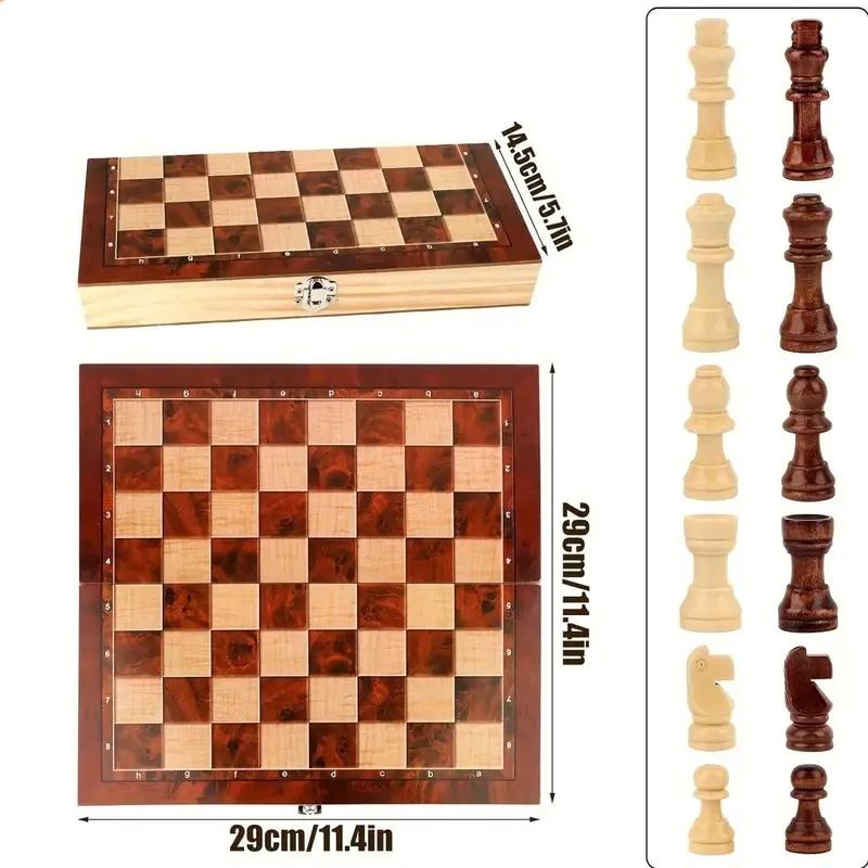 - Pièces d’échecs : Comprend des pièces en bois, chacune finement sculptée.