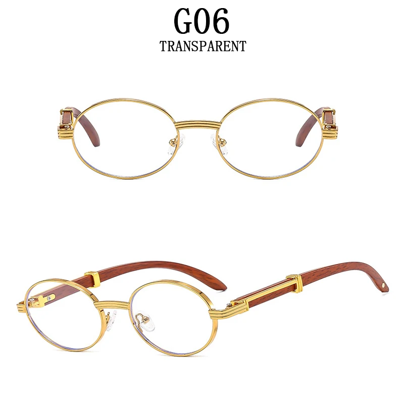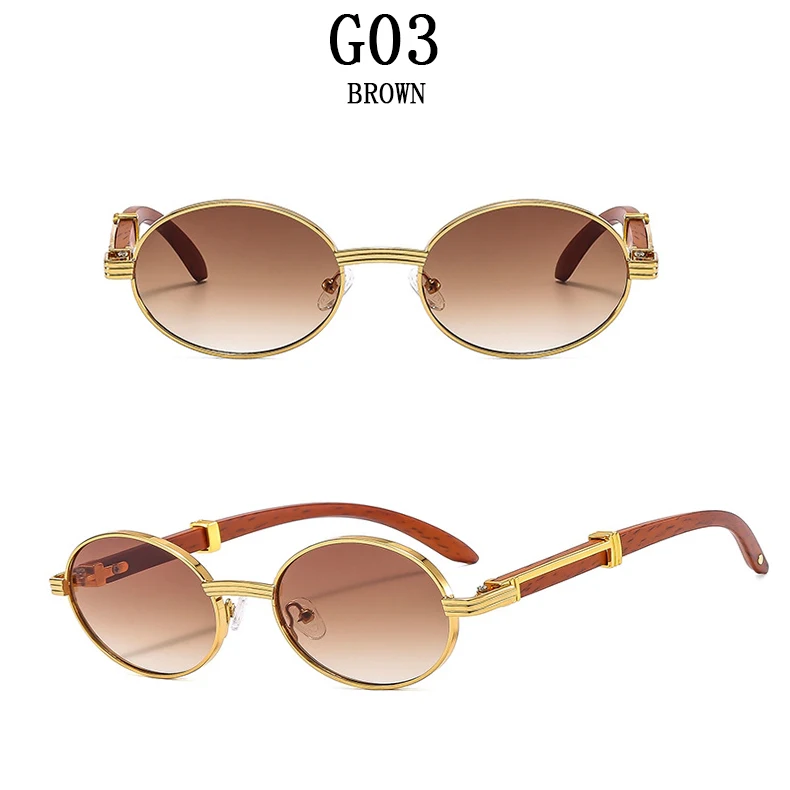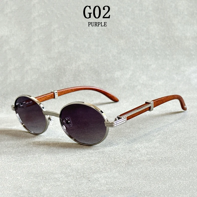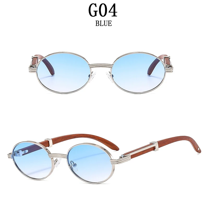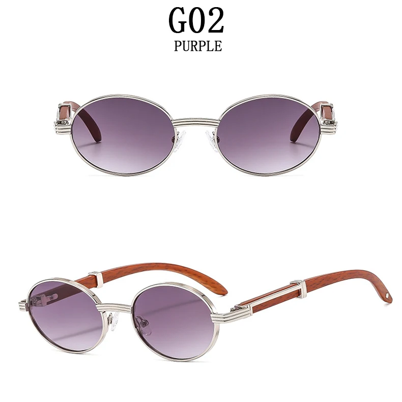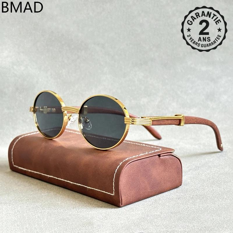 Lunettes de Soleil Femme en Bois Acier Mode Rétro Classe UV400 Ovales Vintage