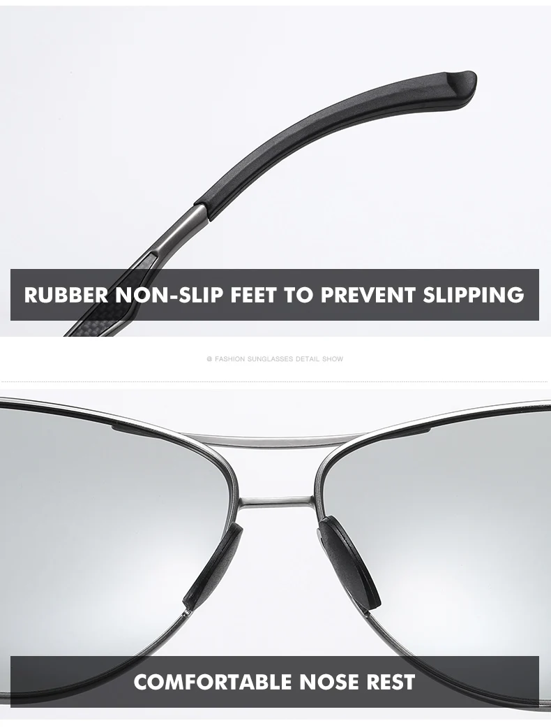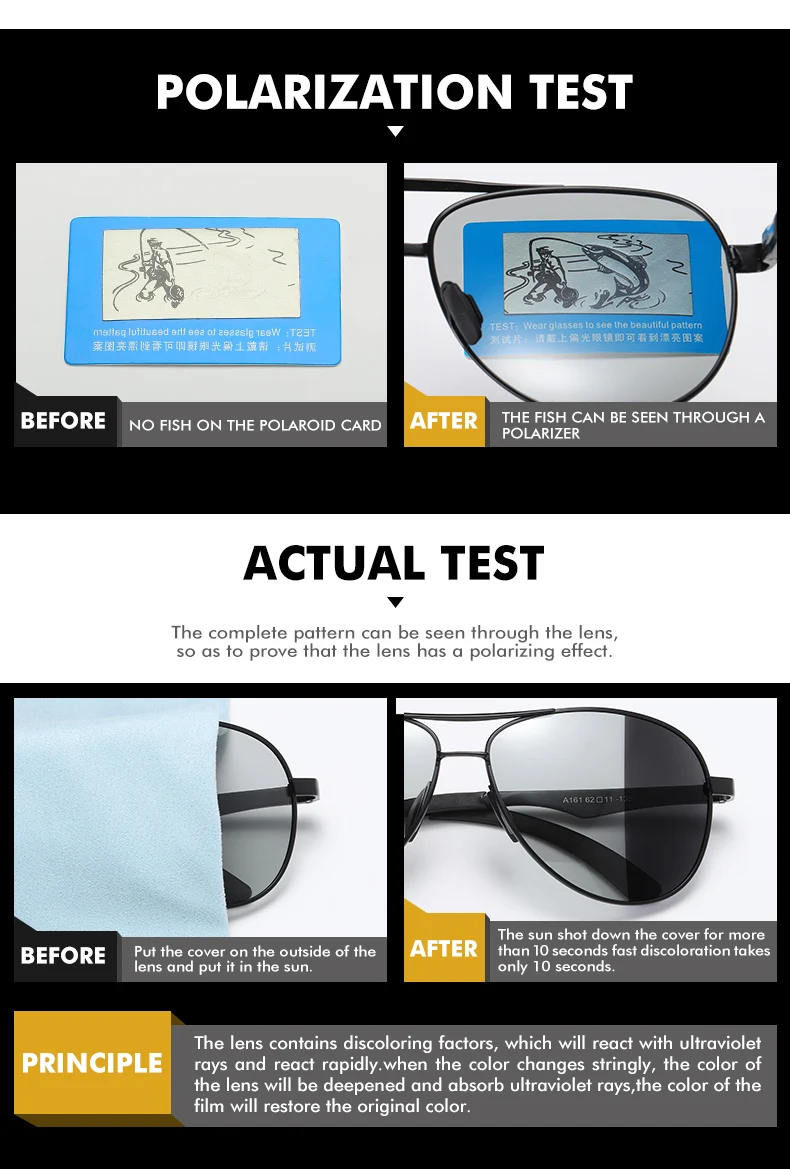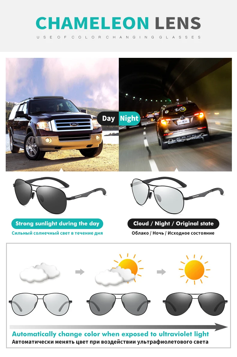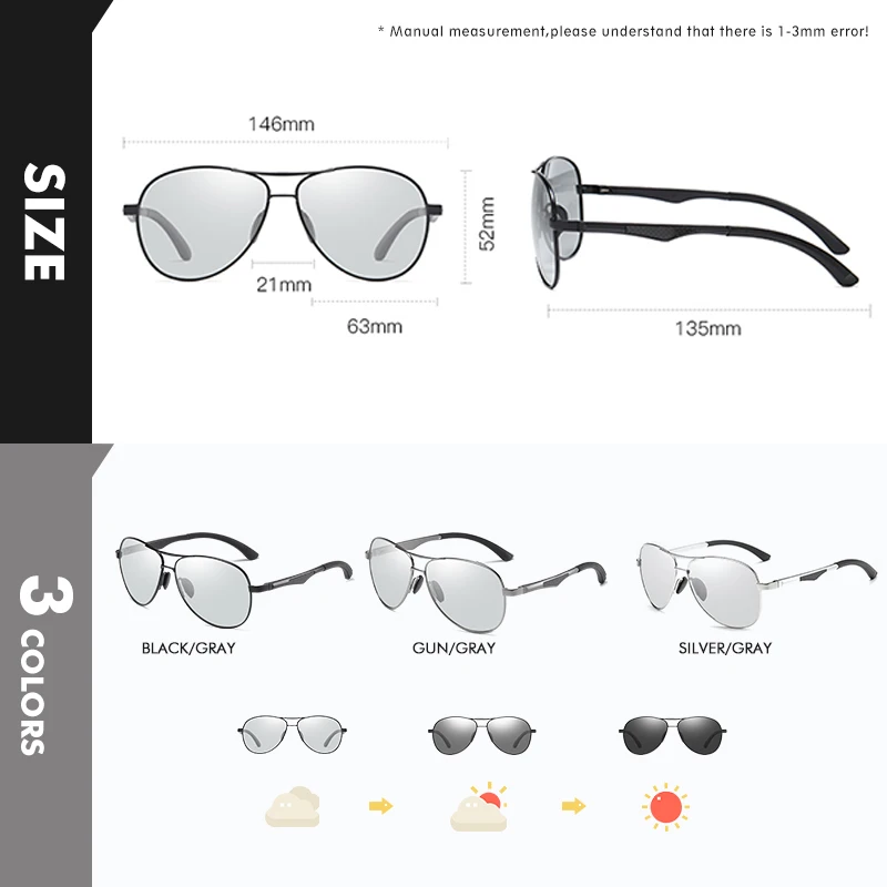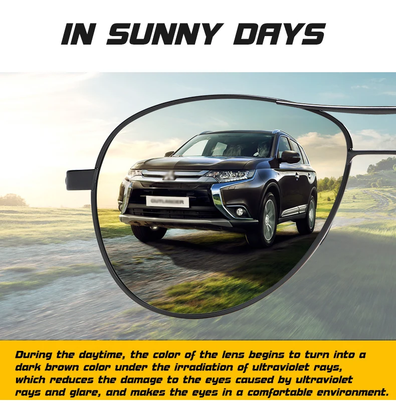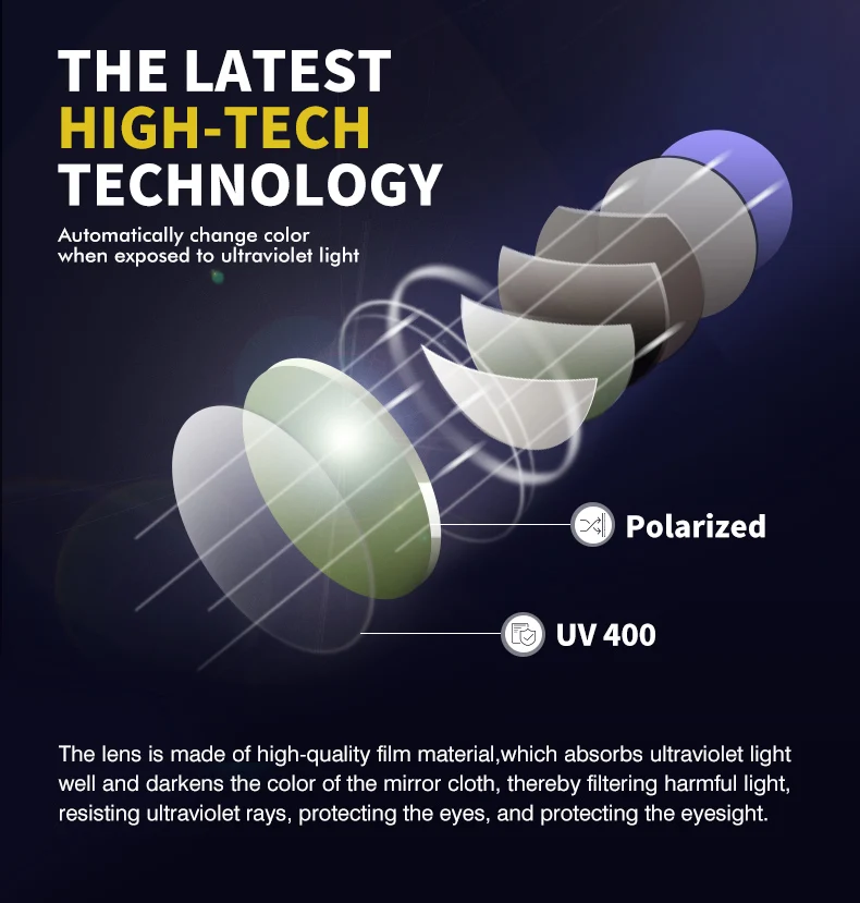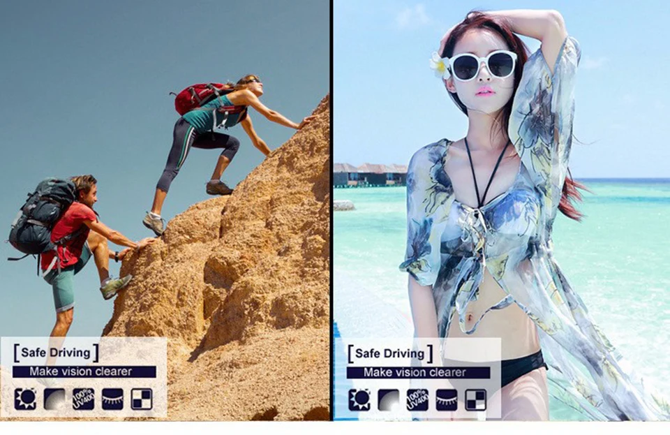 Les verres photochromiques réagissent à la lumière, s’assombrissant automatiquement en plein soleil et redeviennent clairs à l’intérieur ou par temps nuageux. Cela signifie que vous pouvez porter ces lunettes en toute confiance, que vous soyez en train de conduire, de faire du shopping ou de profiter d’une journée à la plage.