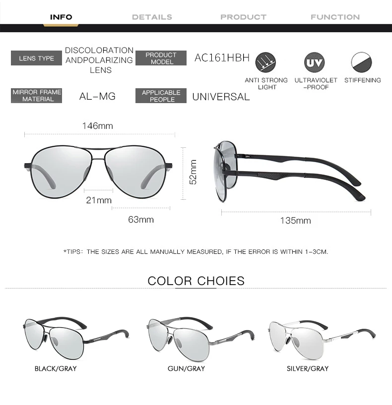Ne laissez pas le soleil gâcher vos sorties. Optez pour les Lunettes de Soleil Photochromiques Chrome, où le style rencontre la technologie. Transformez votre expérience en plein air et faites l’expérience d’une vision claire et d’un confort inégalé.