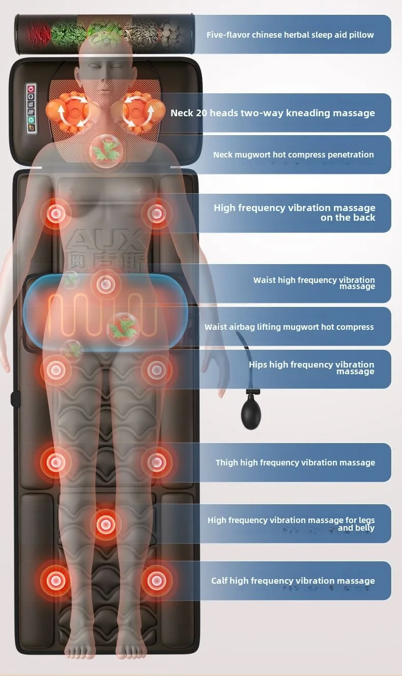 Ce matelas de massage est idéal pour un large éventail d’utilisateurs. Que vous ayez besoin de soulager les douleurs au dos, aux jambes, aux bras ou aux pieds, cet appareil s’adapte à toutes les parties de votre corps. Avec ses oreillers inclus, vous bénéficiez d’un soutien supplémentaire pour un confort maximal.