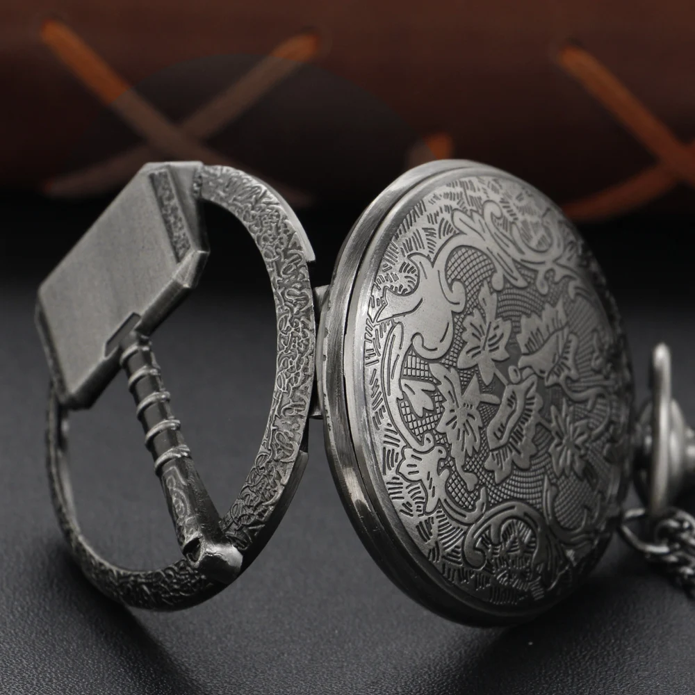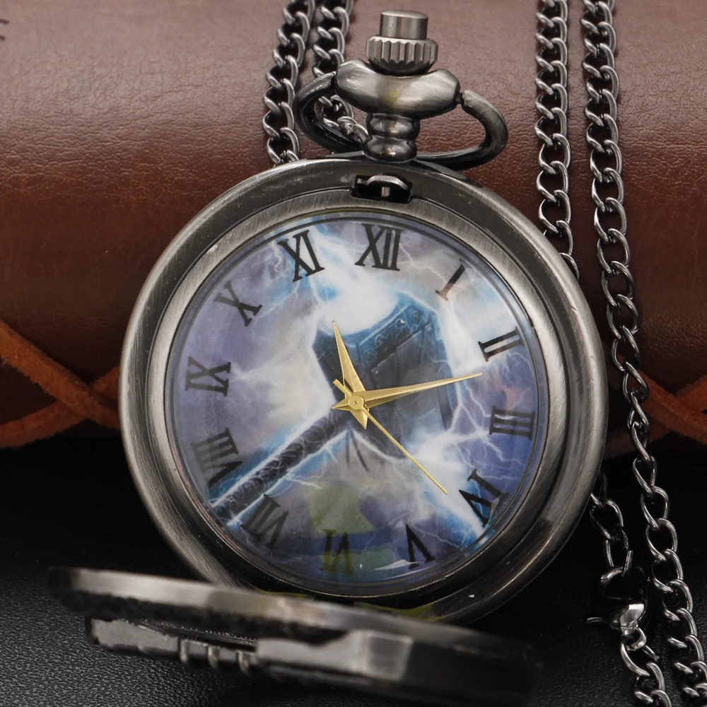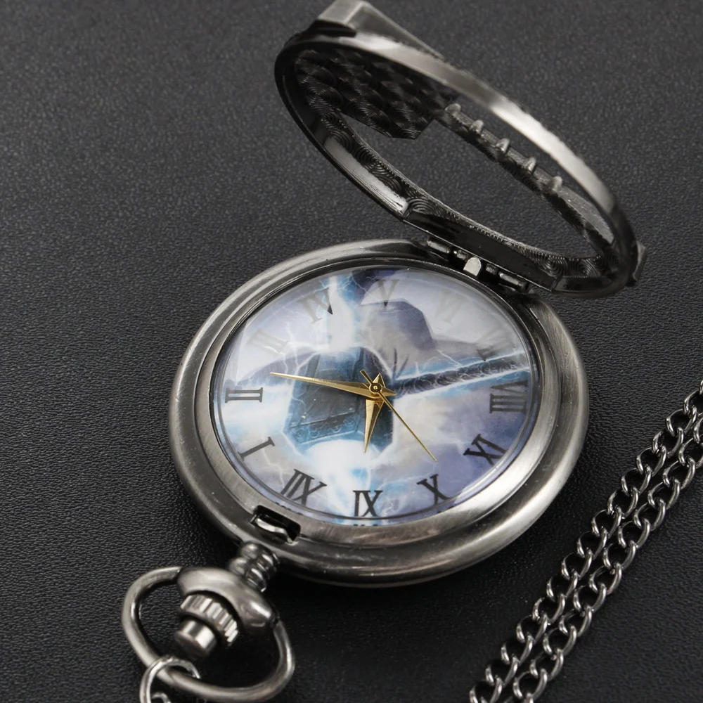 Montre à Gousset de Poche Marteau de Thor Mjolnir Chiffres Romains Quartz Acier