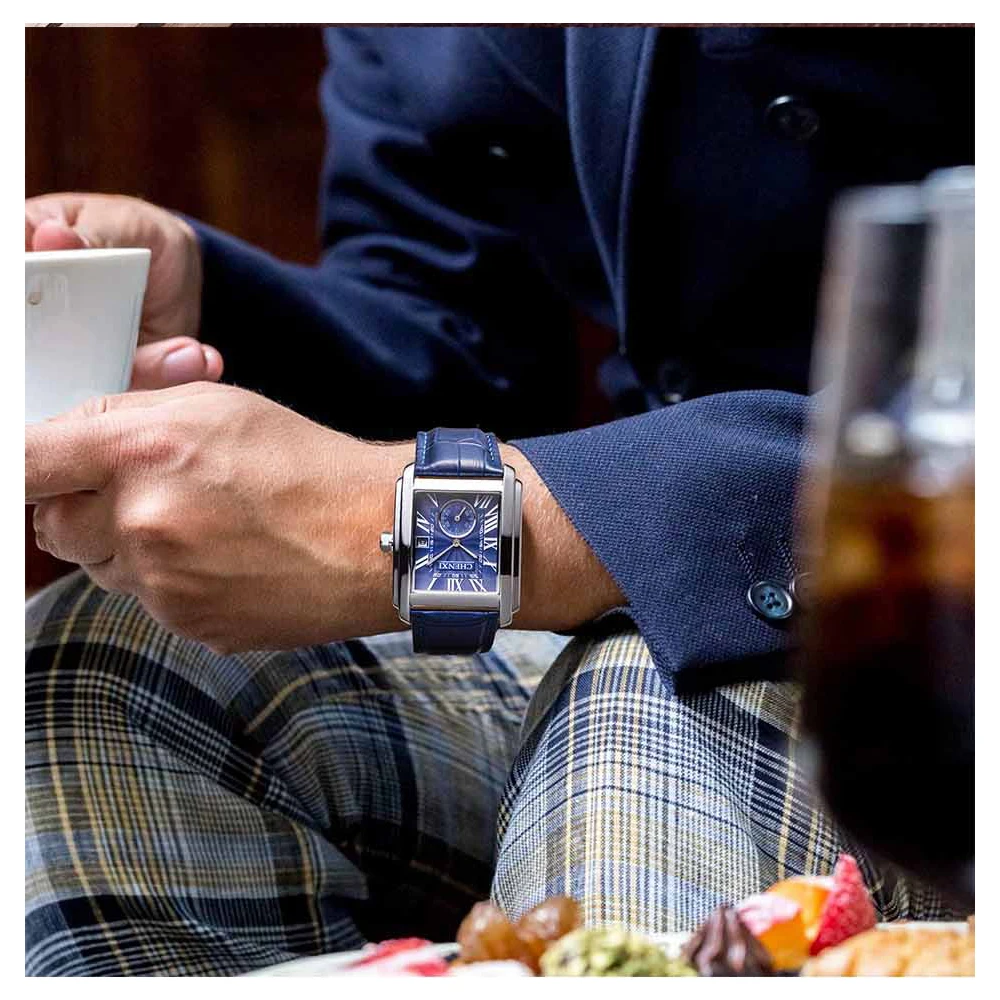 Montre-bracelet carrée de luxe pour hommes avec un design unique et élégant. Voici ses caractéristiques :