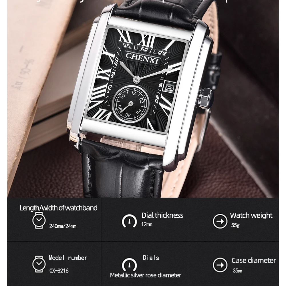 En somme, la Montre Homme Carré Chrome Quartz est bien plus qu’un simple accessoire ; c’est un véritable allié de style pour l’homme moderne. Avec son design chic, ses fonctionnalités pratiques et sa qualité de fabrication, elle répond à tous les besoins et désirs d’un public exigeant. Ne manquez pas l’opportunité d’ajouter cette pièce maîtresse à votre collection ou de l’offrir à un être cher.