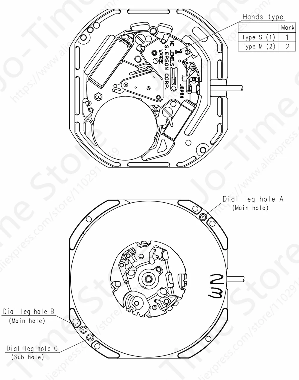 Caractéristiques du mouvement Epson VX42 : Ce mouvement de montre est connu pour sa précision et sa fiabilité. Voici les principales spécifications :