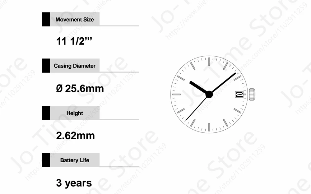 Conçu pour s’adapter à divers modèles de montres, le mouvement VX42 est facile à installer. Que vous soyez un professionnel ou un amateur, vous apprécierez la simplicité de son montage. Avec une date affichée à 3 heures, il est non seulement pratique mais également esthétiquement plaisant.
