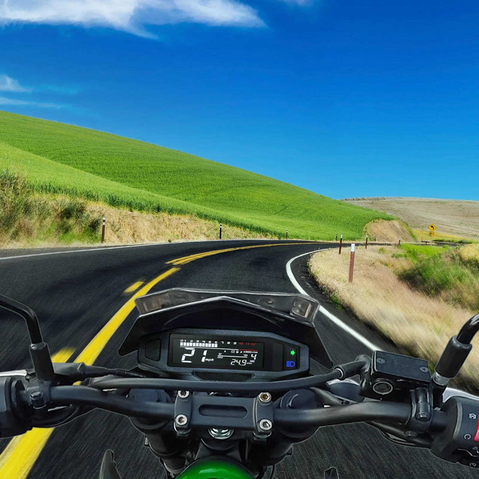 Avec son design noir élégant, ce tableau de bord ne se contente pas d’être fonctionnel ; il ajoute également une touche de style à votre moto. Son écran numérique clair et lumineux vous permet de lire facilement toutes les informations nécessaires, même dans des conditions de faible luminosité.